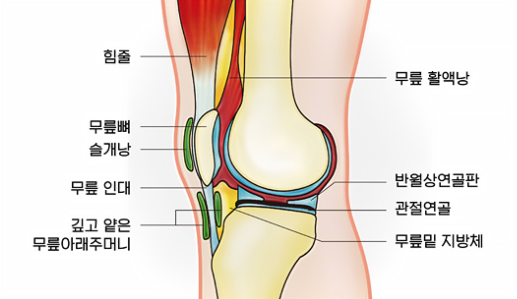 무릎관절 통증을 이해하기 위해서는 단순히 “관절이 안 좋다”는 표현보다 무릎관절이 어떤 구조로 이루어져 있고, 각 구조가 어떤 역할을 하는지를 정확히 아는 것이 중요하다.
